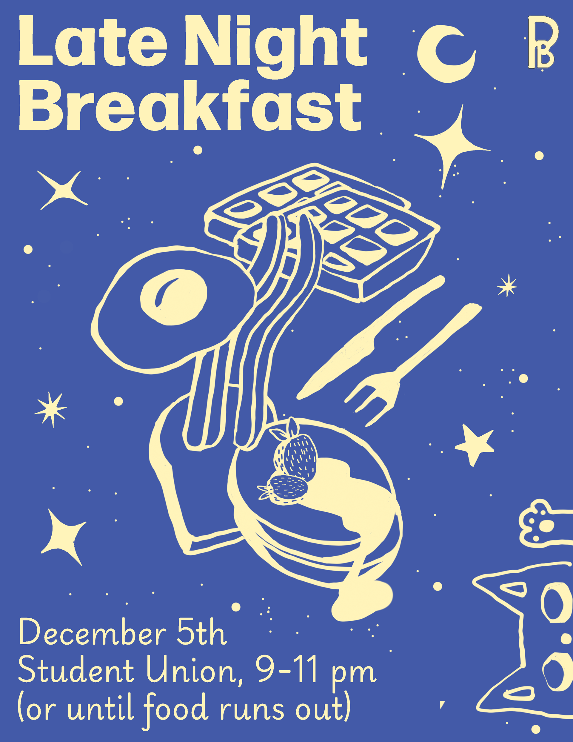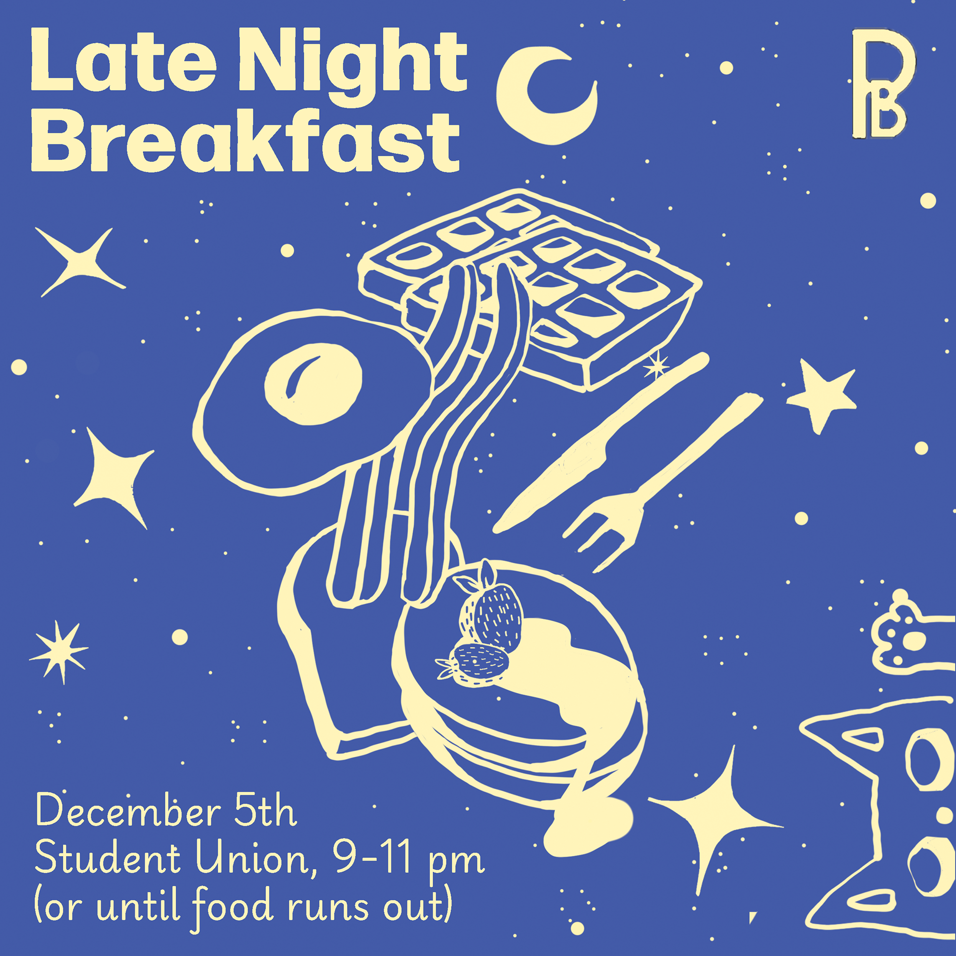 Poster+Social Media post for Pratt Institute's Late Night Breakfast.