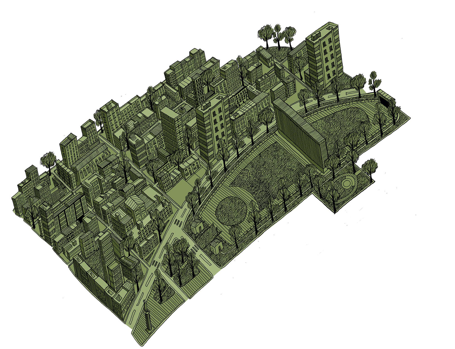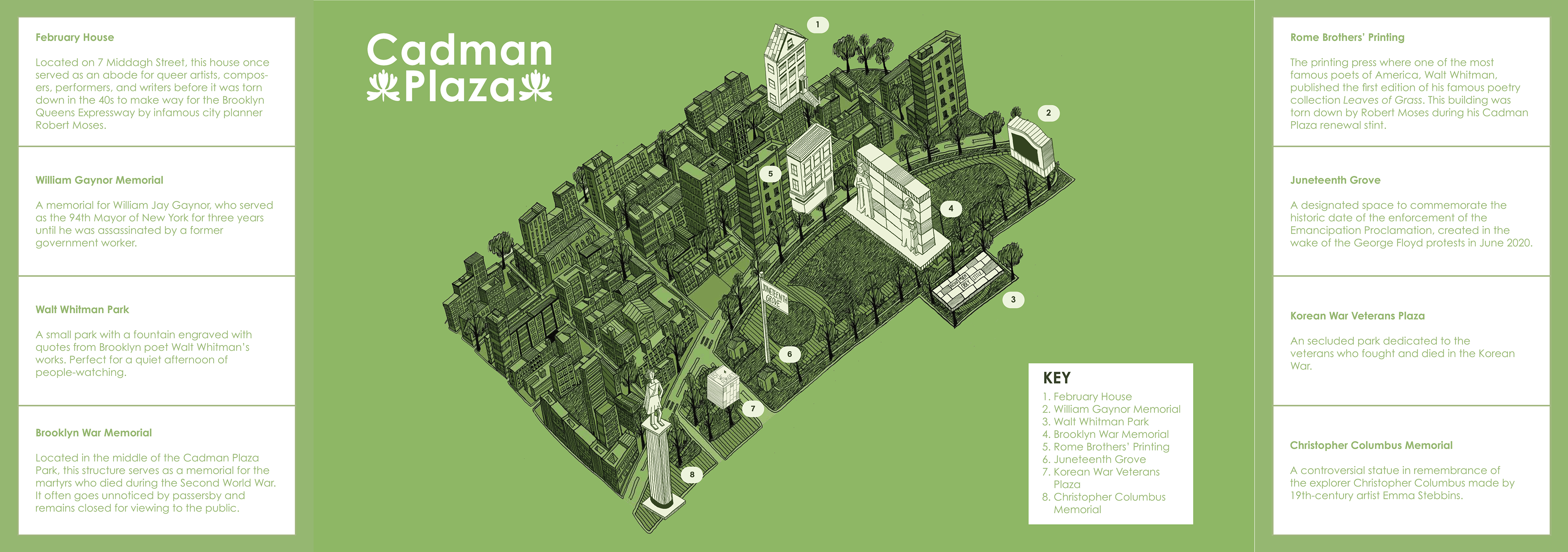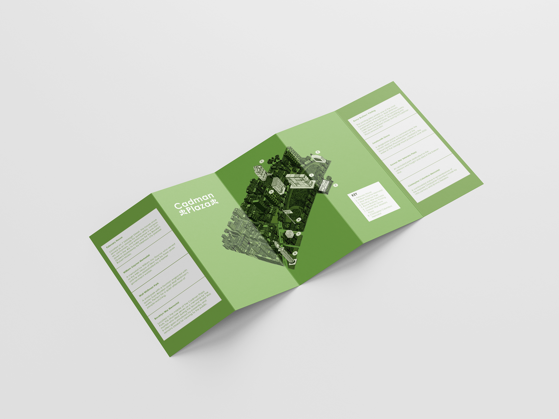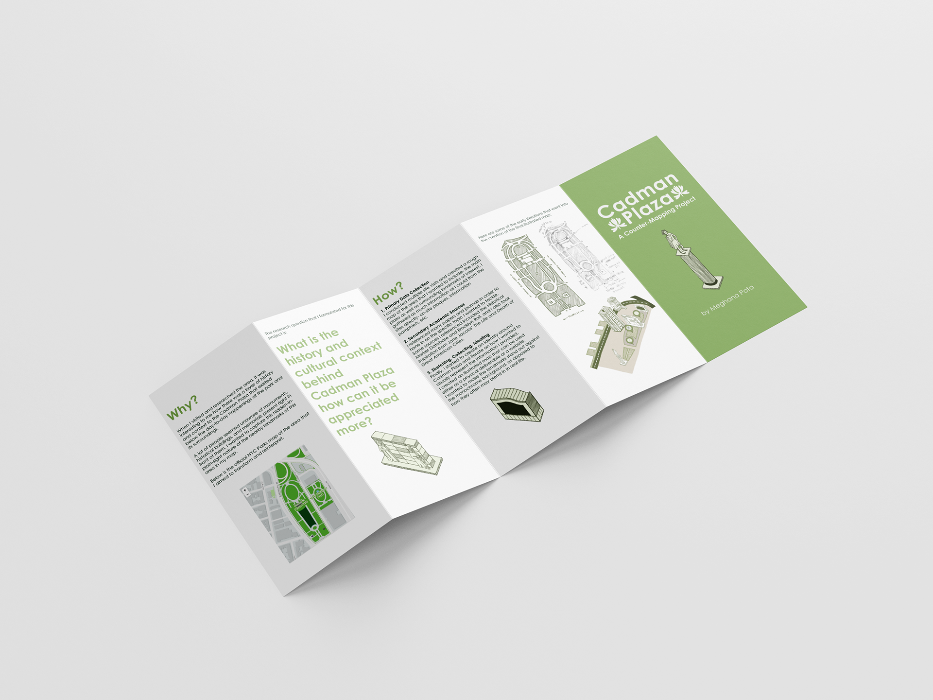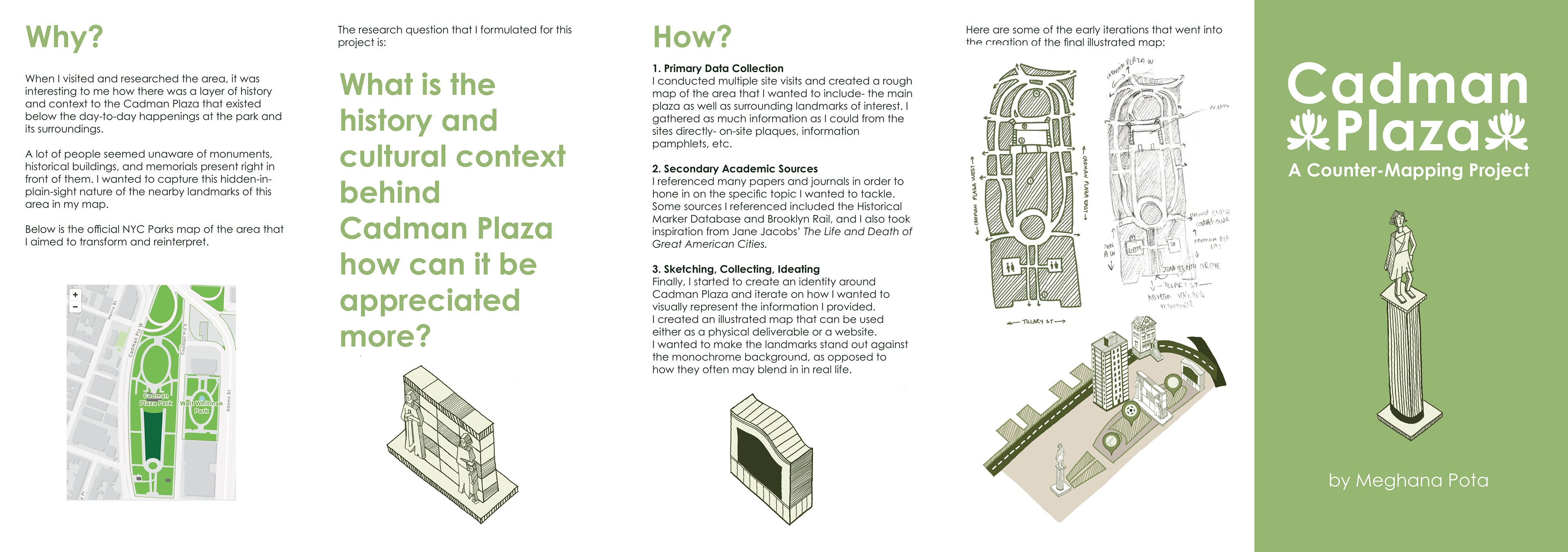 Brochure design for a map made for a Counter-Mapping project. Based on the Cadman Plaza area in Downtown Brooklyn. Done with pen, Photoshop, and InDesign.