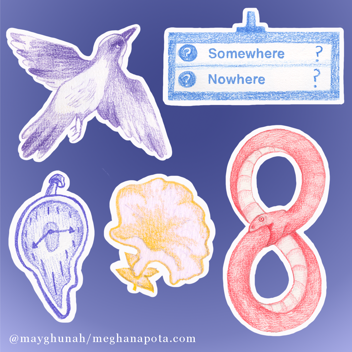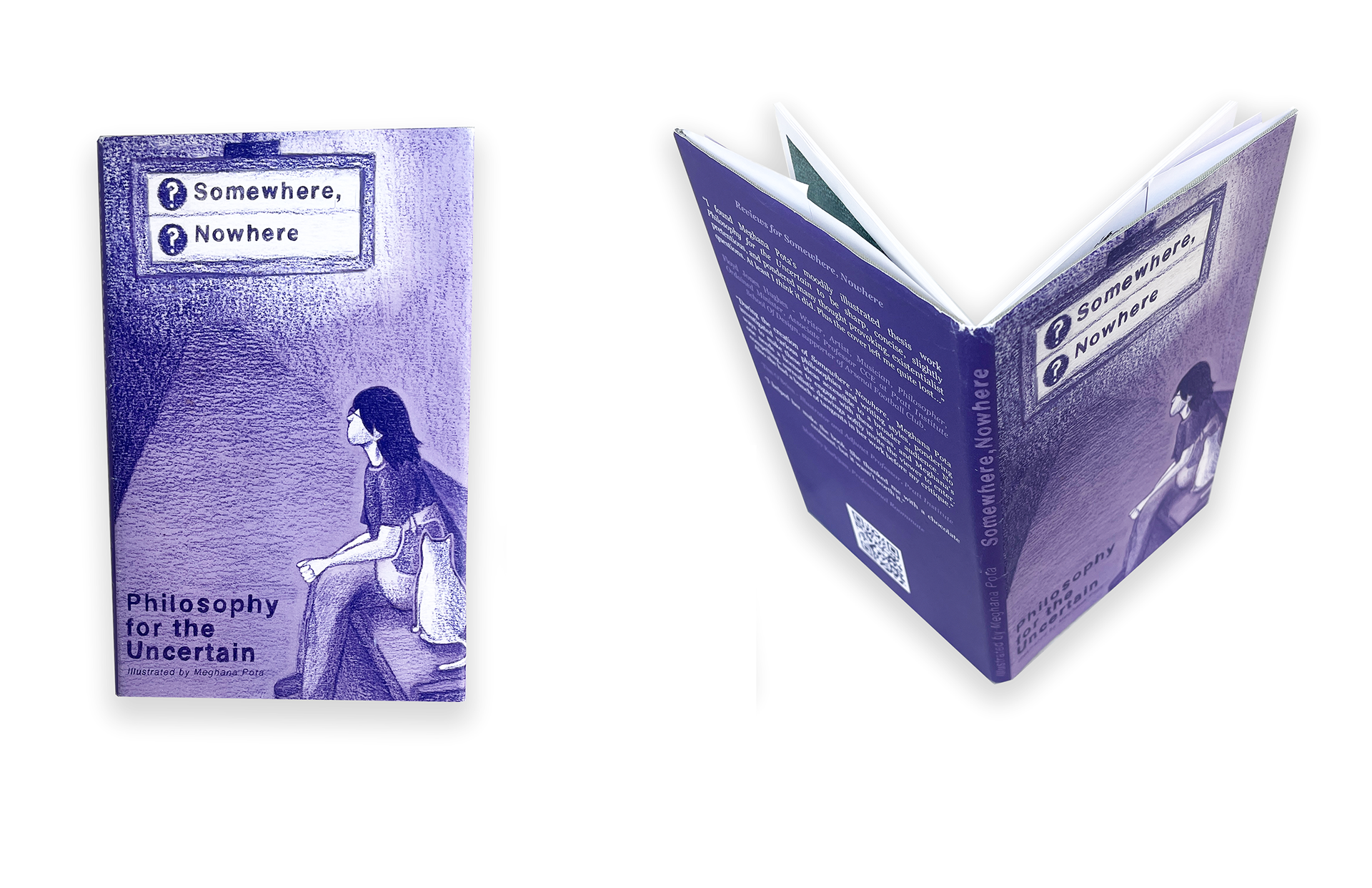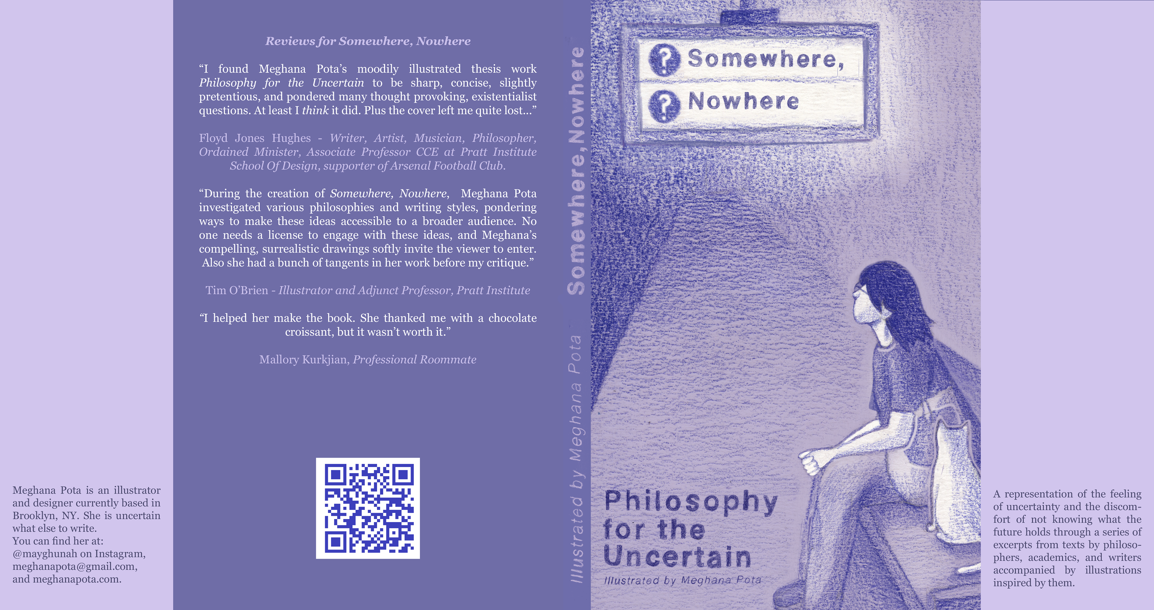 Book jacket, interior design, and stickers for my Senior Thesis- Somewhere, Nowhere.