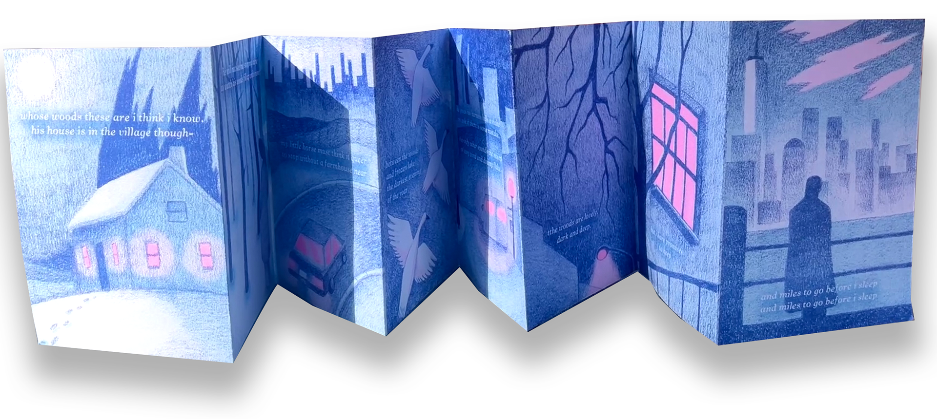 Illustrated accordion book of Robert Frost's poem