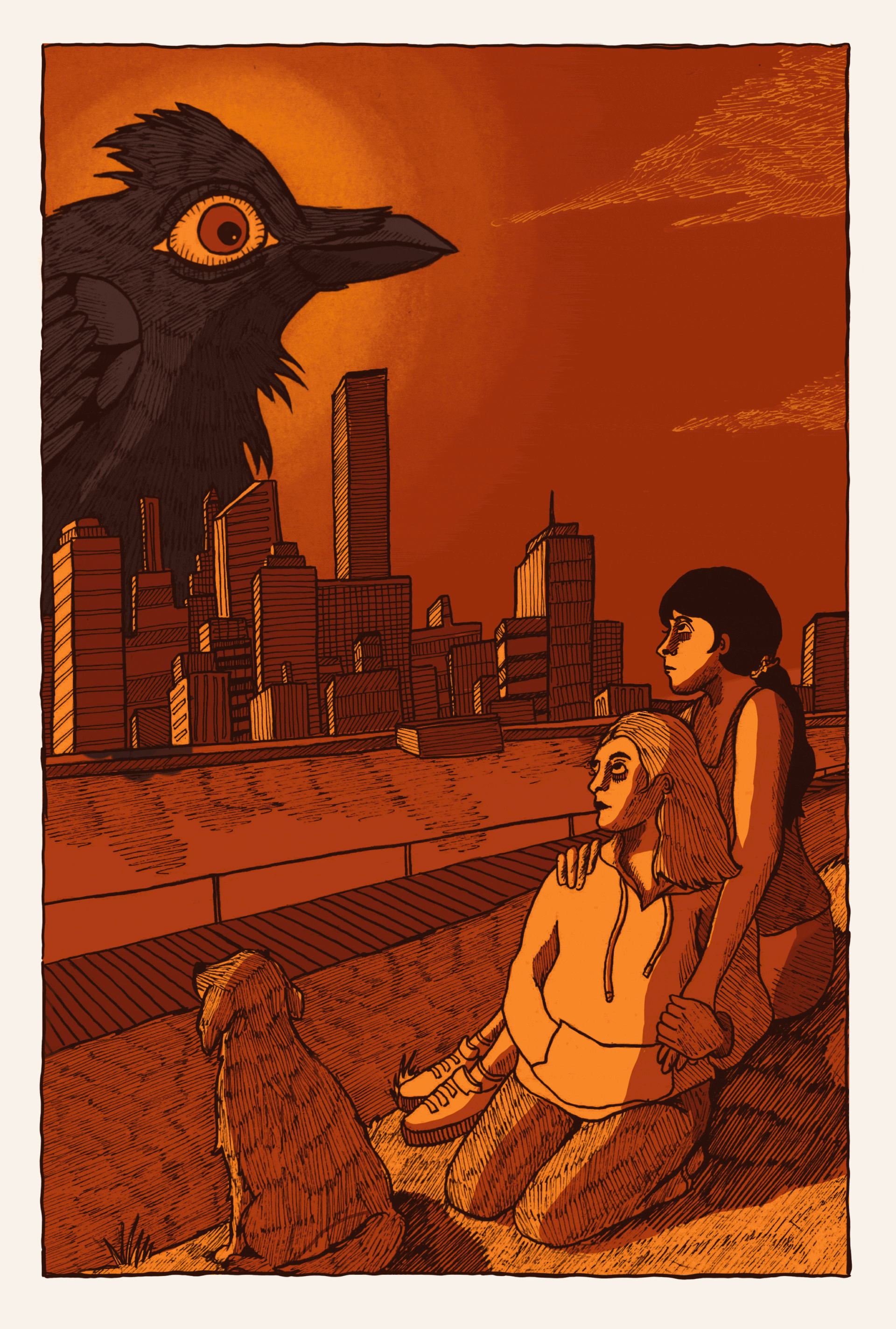 Done with ink and Photoshop. Based on the prompt of climate doomerism.